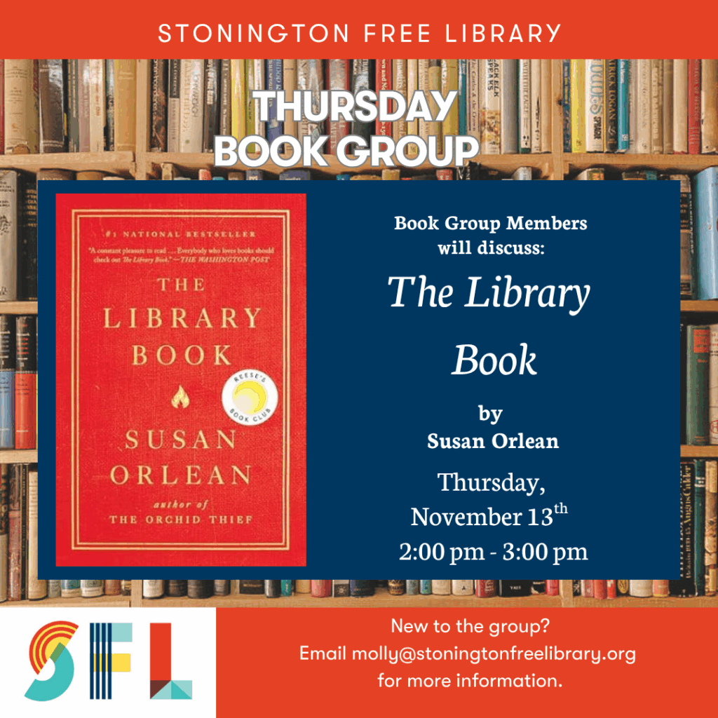 The SFL Thursday Book Group will meet on Thursday, December 12th to discuss American Dirt by Jeannine Cummins. The meeting will be held at the library starting at 2pm. Join in the conversation and pick up your next read. Check back for updated information. Contact molly@stoningtonfreelibrary.org for more information or to be added to the email list.