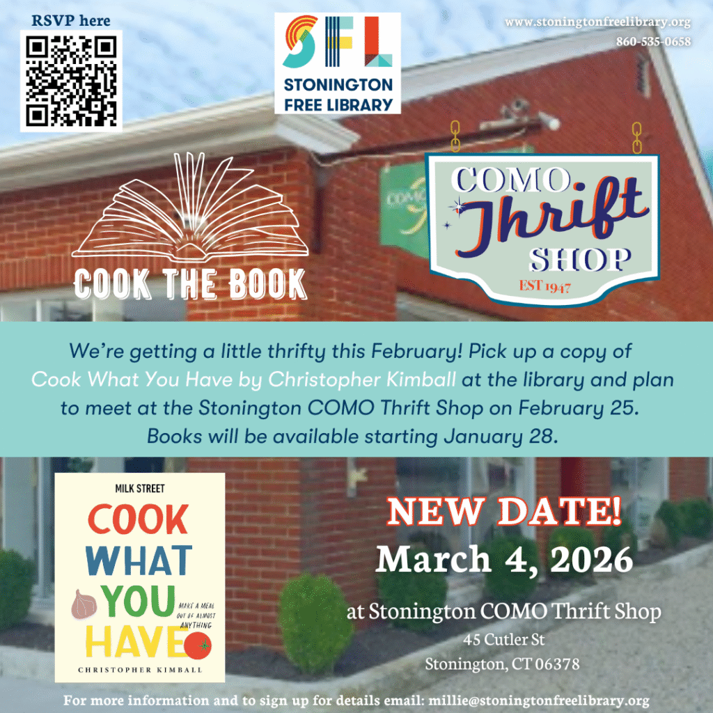 Join the discussion at Stonington Human Services, 166 S. Broad Street, Pawcatuck. For more information email molly@stoningtonfreelibrary.org or call Stonington Human Services at 860-535-5015.