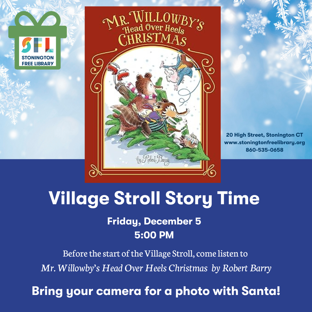 Join us right before the Village Stroll tree lighting for a special story time with Mrs. Taylor and Santa!